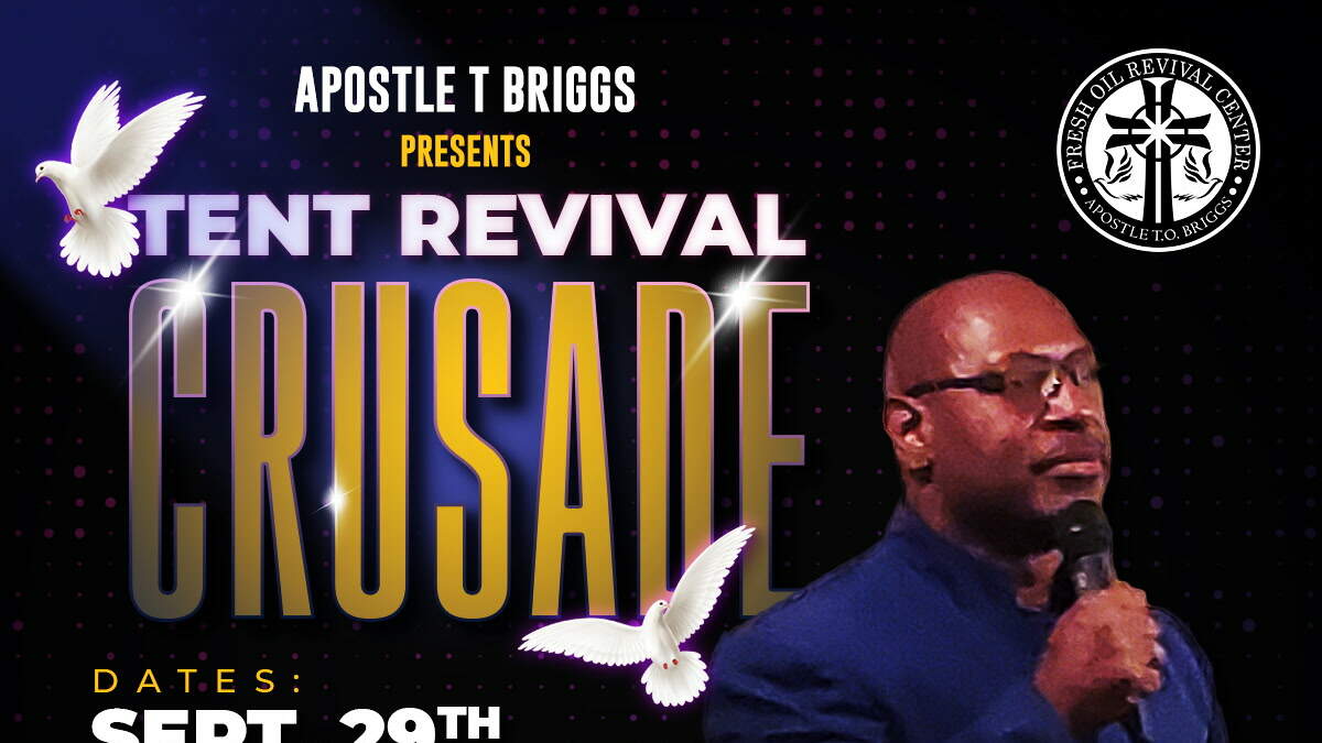 Join Fresh Oil Revival Center for their Tent Revival Crusade, September 29th–October 3rd at 7pm nightly at All Saints Kingdom Church!