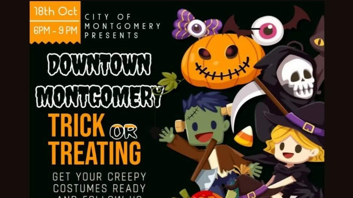 Enjoy trick or treating downtown Montgomery on Saturday, October 18th from 6p-9p. Only for kids 18 and under.